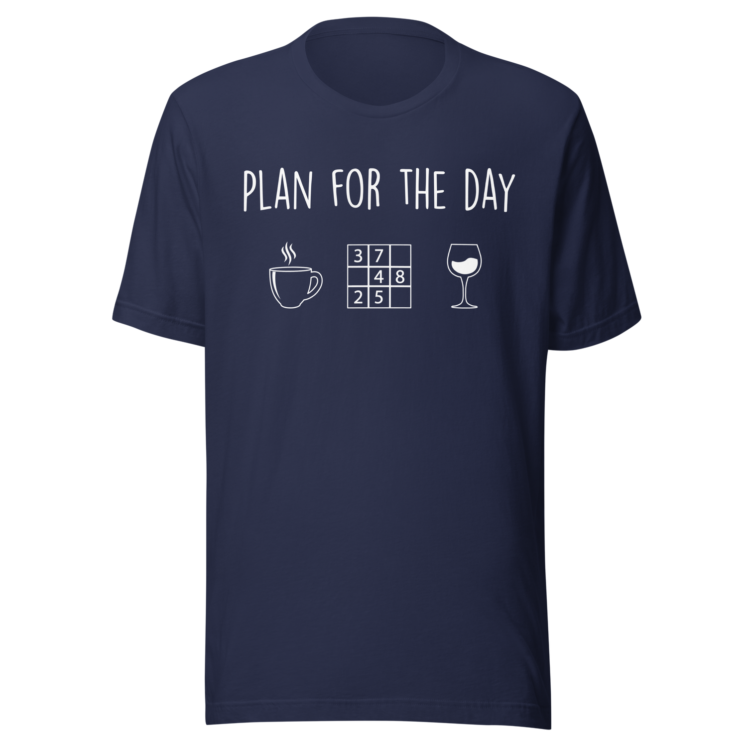 Plan For The Day: Coffee, Sudoku, Wine - Coffee Tee - Sudoku T-Shirt - Wine Tee - Puzzle T-Shirt - Relaxation Tee