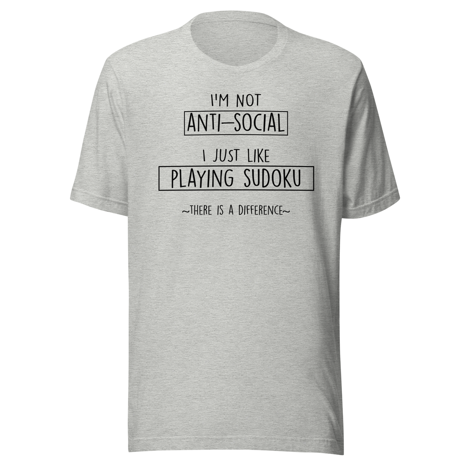 I'm Not Anti-Social I'm Just Playing Sudoku There Is A Difference - Mood Tee - Sudoku T-Shirt - Humor Tee - Puzzler T-Shirt - Introvert Tee